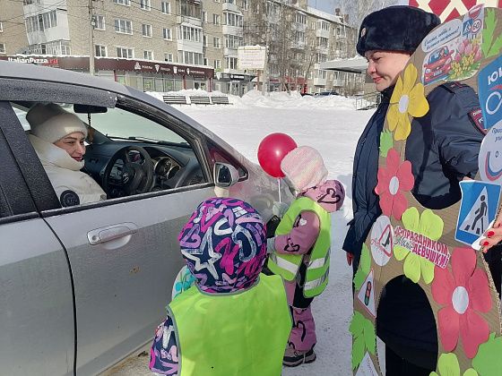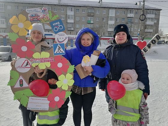 Накануне замечательного весеннего праздника – 8 Марта – сотрудники Госавтоинспекции города Серова совместно с воспитанниками детского сада №23 «Солнечный город» провели праздничную профилактическую акцию, направленную на привлечение внимания к безопасности дорожного движения и создание праздничного настроения у прекрасной половины человечества.
