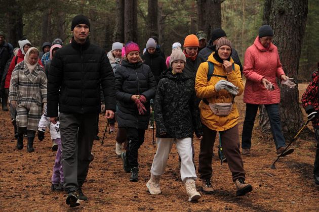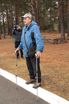 Перед началом прогулки Андрей Анатольевич провел небольшой инструктаж и рассказал, как пользоваться палками для скандинавской ходьбы и как правильно отрегулировать их длину. В этот день Беляев прошел дистанцию с парой таких палок.