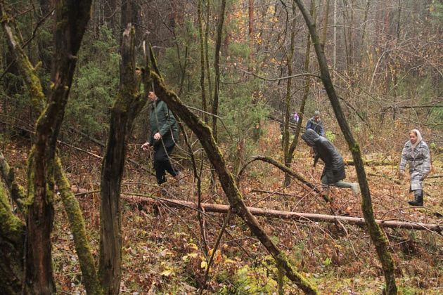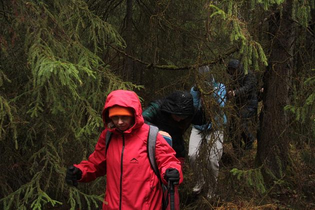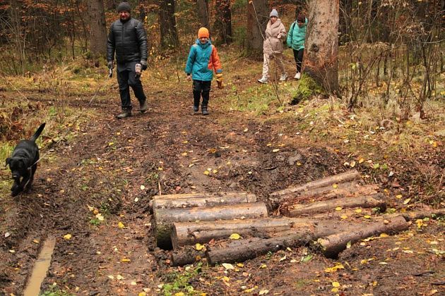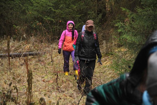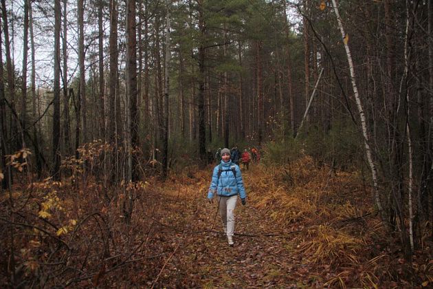 Людей, желающих пройти самую большую дистанцию, насчиталось порядка двух десятков. Маршрут проложенный по оврагу и старым лесным дорогам, вывел сначала в районе телевышки, а оттуда вновь свернул в лес и вернулся на размеченную тропу.