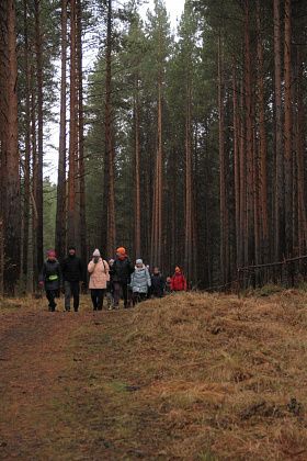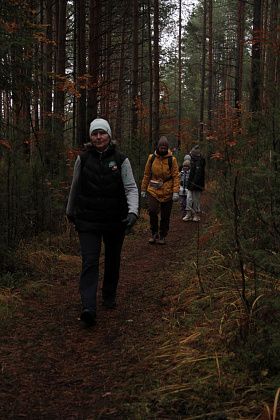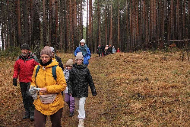 Участникам прогулки предложили пройти три дистанции. Первая – самая короткая, около 1,4 километра. Преодолев ее, группа вернулась к лыжной базе.