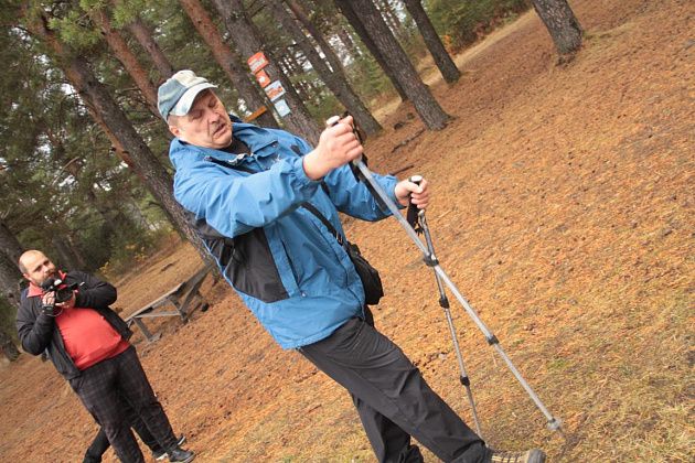 Руководитель турклуба продемонстрировал правильную технику ходьбы с палками: