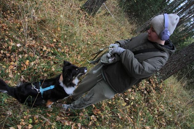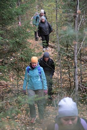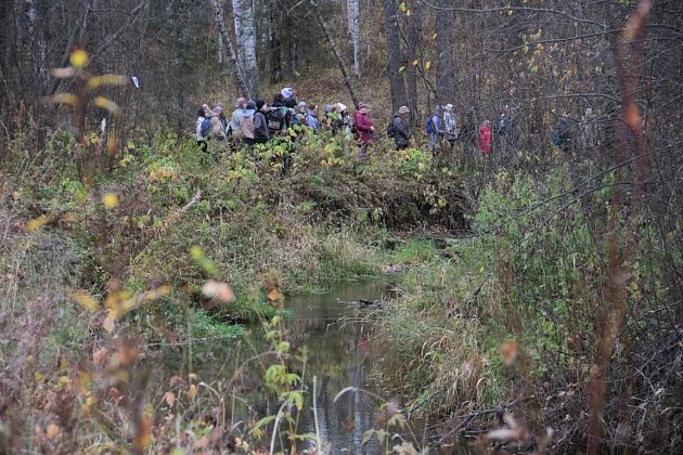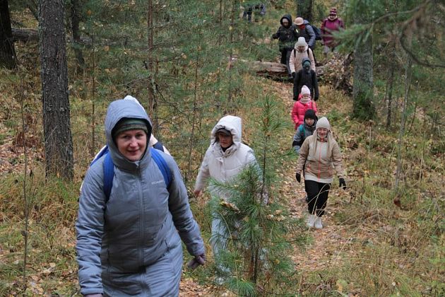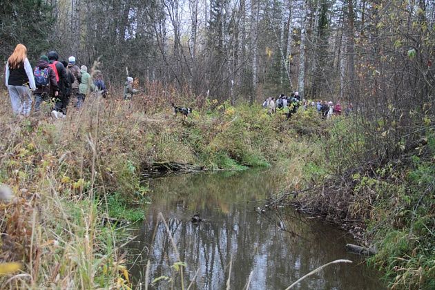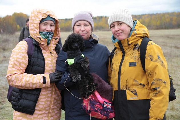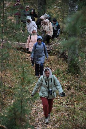 Кто-то шел с палками для скандинавской ходьбы. Кто-то взял с собой четвероногих друзей, которые с удовольствием бегали по лесу и полям. Часто участники прогулки останавливались, чтобы сделать фотографии – природа живописная, настроение хорошее.