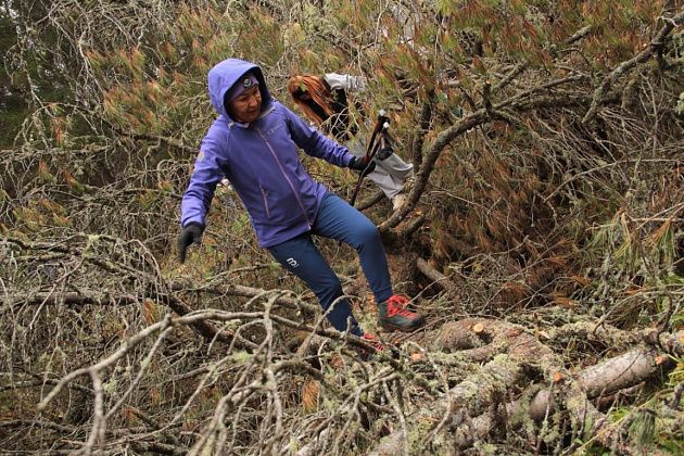 С утра было достаточно прохладно, можно даже сказать – морозно. На растениях осел иней, изо рта поднимался пар. Периодически пролетали одиночные снежинки. Но было тепло – в лесу было совершенно безветренно, двигаться приходилось в бодром темпе. Периодически лидирующая группа останавливалась, дожидаясь отстающих, никто никого не подгонял.
