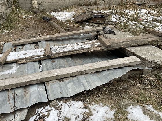 Земля там, отходы постепенно превращаются в землю. Это потихоньку все “перегорает” и образуется - весь навоз в землю превращается. Мы уберем это, свое сделаем и трубы оголим. А стояк мы чистить не будем, - подчеркнул один из рабочих.
