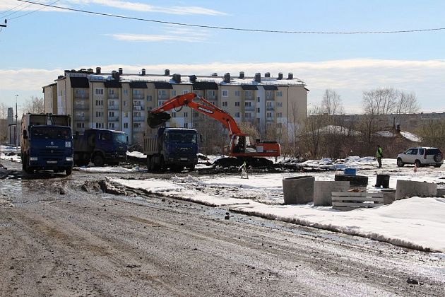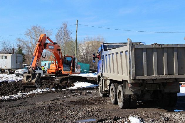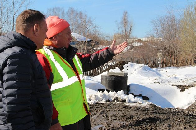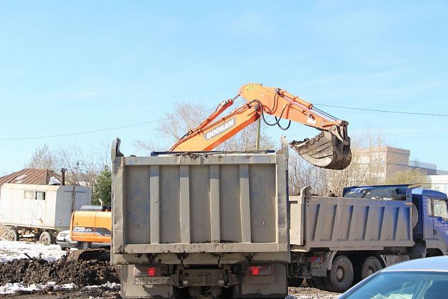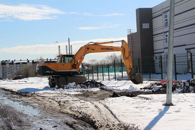 На улице Короленко, в районе новой школы №21, вовсю работала спецтехника. Несколько экскаваторов выгребали грунт и грузили его в самосвалы. Чиновников встретил руководитель подрядной организации ООО “Стандарт Строй”