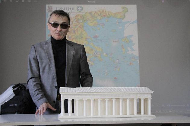 Вы когда-нибудь собирали модель вслепую? А параллельно рассказывали об искусстве античности? Именно за этим занятием можно было застать искусствоведа Алексея Филатова в Центральной городской библиотеке имени Д.Н. Мамина-Сибиряка. Собирал он модель храма. А вслепую потому, что Алексей Юрьевич – слепой.