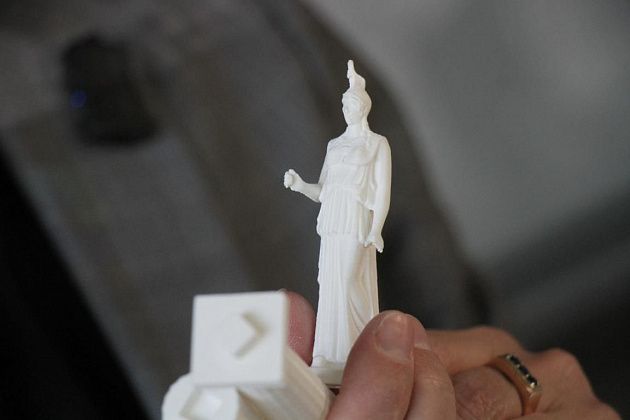 Алексей извлекает из коробки пластиковую фигурку – статуя Афины Паллады. Она занимает свое место в храме, который постепенно растет на библиотечном столе.