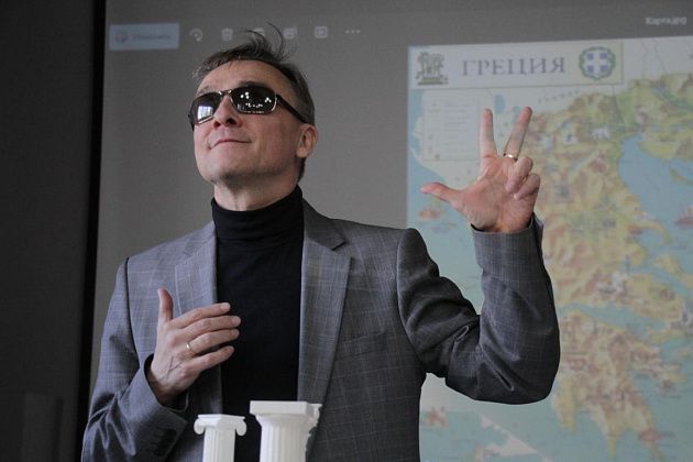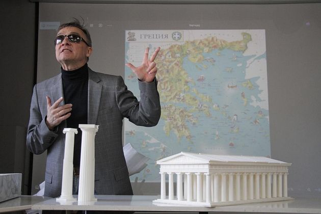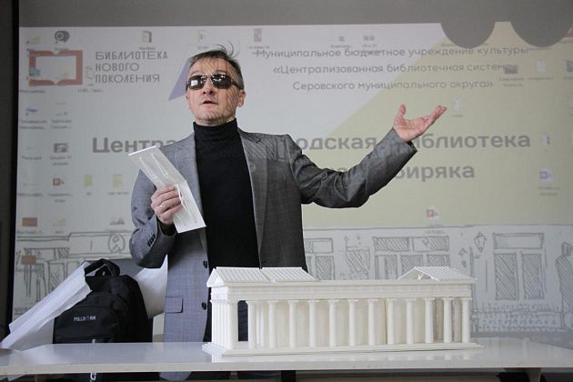 – Сегодня у нас эксклюзивное мероприятие в библиотеке. У нас очень редкий и от того еще более желанный гость – искусствовед Алексей Юрьевич Филатов, который приехал в город Серов пообщаться с членами Общества слепых. Но, узнав о таком госте, мы, конечно, тоже захотели с ним встретиться. Мы предложили ему на выбор несколько тем. И он выбрал тему античности, – рассказала библиотекарь