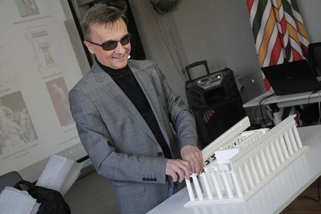 школе для слепых и слабовидящих детей в Верхней Пышме. Когда я разговариваю с детьми, особенно с детьми, которые с рождения слепые, об искусстве, об архитектуре, в основном об архитектуре, я понял, что самое проблематичное для ребенка, который с рождения слепой, это понятие пространства и объема. А как можно рассказать о пространстве и объеме лучше, чем при наличии макета.