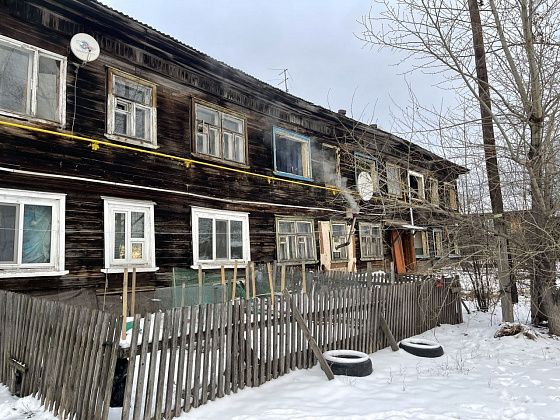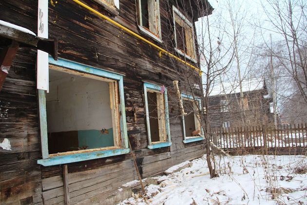 Двухэтажный дом №24-а по улице Парковой расселили летом 2025 года. Вместо входной двери на одном подъезде установлена комнатная дверь. Половицы на крыльце прогнили и сломались. Часть оконных блоков стоит без рам. В доме отключен свет. Из окна первого этажа на улицу выведена труба от печки-буржуйки, из нее вьется дымок. Стена вокруг этого окна утеплена ветошью. Печкой отапливается часть комнаты, где живет 79-летняя