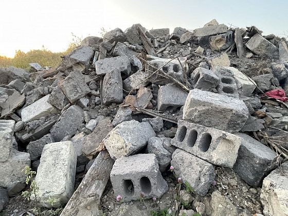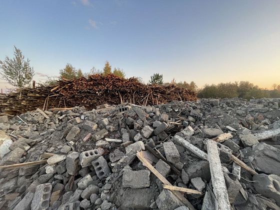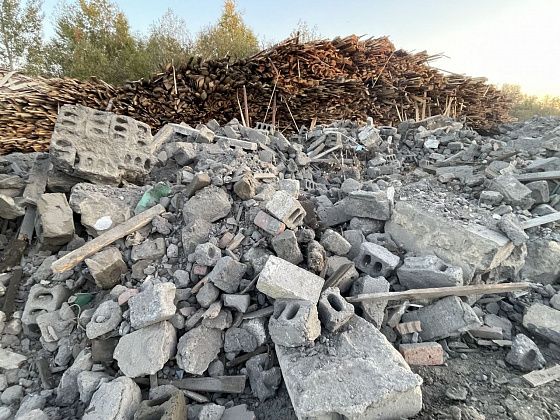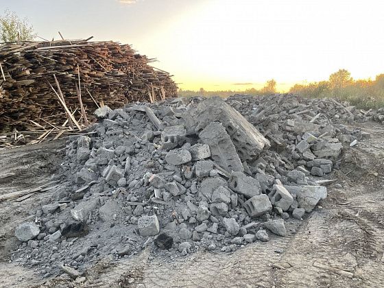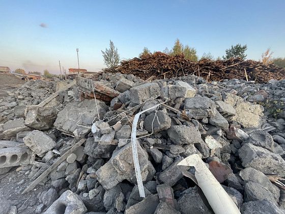 В районе Лесозавода в середине сентября появились груды строительного мусора. Кучи бывшего золоблока, остатков железобетонных конструкций растянулись на несколько десятков метров. По мнению жителя города, все это вывозится с улицы Февральской Революции, где сносят дом №2, и складируется на пустыре неподалеку от моста через реку Какву.