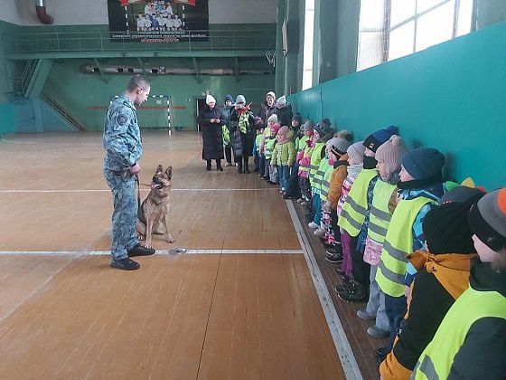 Алексеем Меньшиковым и его четвероногим напарником – служебной собакой по кличке Царина. Ребята с радостью наблюдали за ее показательным выступлением из раздела «Школы послушания» и специального – обнаружение по запаху имитатора взрывчатого вещества. Царина справилась с заданием на «5». Дошколята в ходе диалога с кинологом узнали, как проходят обучение и тренировки животных, и какую неоценимую помощь они оказывают полиции.