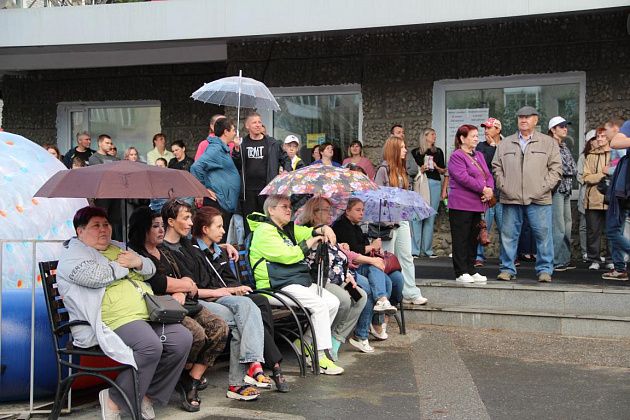 В этом году концерт памяти Виктора Цоя проходил под открытым небом. На площади у кинотеатра “Родина” собралось несколько сотен человек. В субботу периодически шел дождь и многие зрители предусмотрительно взяли с собой зонты. Перед началом концерта на небе появилась радуга.