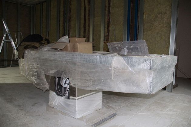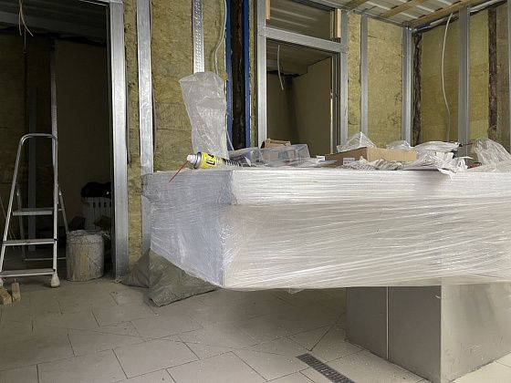 В двух залах морга установлены секционные столы для вскрытия тел. Сергей Эдуардович рассказал, что один стол для - гражданских тел, другой - для судебных. - Санузел для персонала есть, сантехника есть, выводы все готовы по сантехнике, осталось установить. Также осталось запустить отопление, - подчеркнул представитель подрядчика.