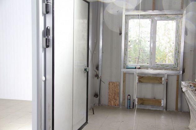 - У нас готово на 90%. Ждем двери, потолки. Остальные все двери стоят, будет линолеум, но он в самом конце ляжет. Двери и потолки заказаны, они на поставке. Вот трупохранилище, его долго ждали. Приехало, за два дня сделали, - рассказал Сергей Эдуардович, показывая на помещение. - Будут стоять пять стеллажей. Трупохранилище на 25 тел.