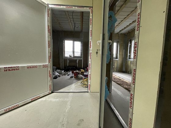 Внутри модульного здания появились новые перегородки в помещениях.