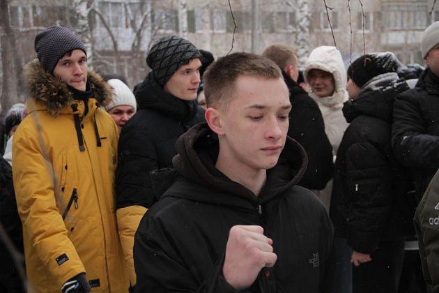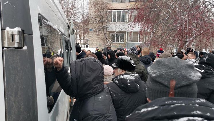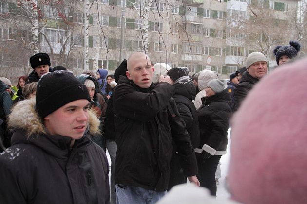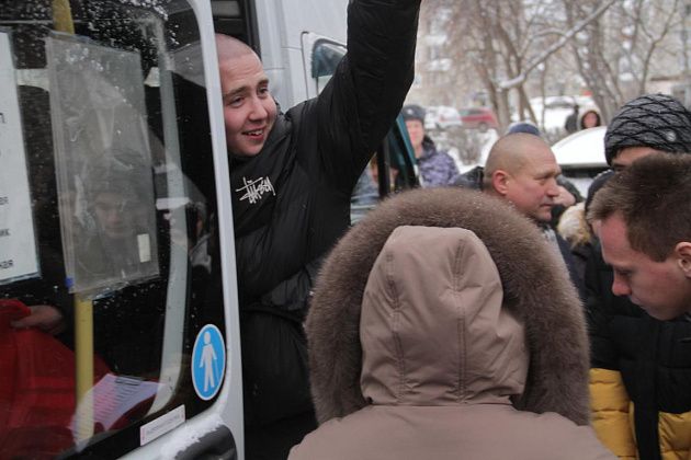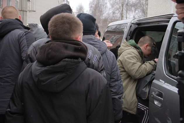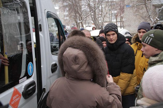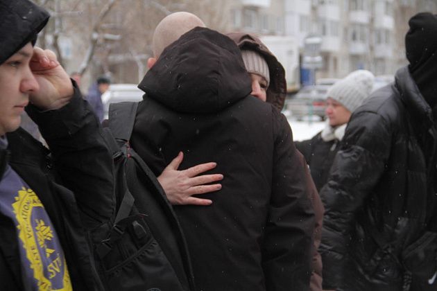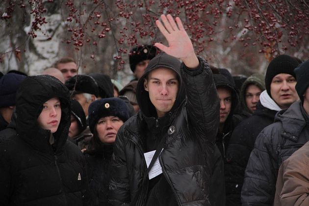 На срочную службу отправили 25 человек. Провожали молодых людей родные и близкие. За порядком на оправке следила полиция. Фото: Константин Бобылев, "Глобус"