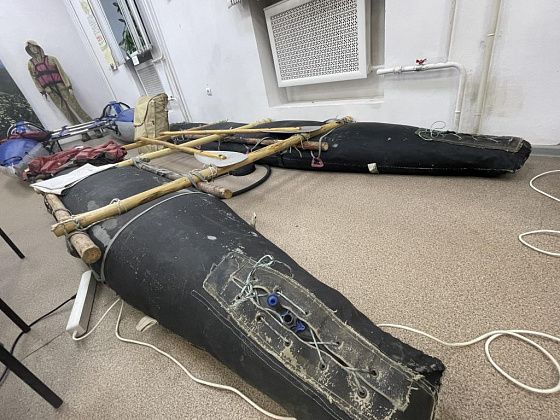 Среди самодельного снаряжения представлен рюкзак знаменитого в среде туристов Леонида Шуклина и самый крупный экспонат - катамаран, созданный Андреем Беляевым.