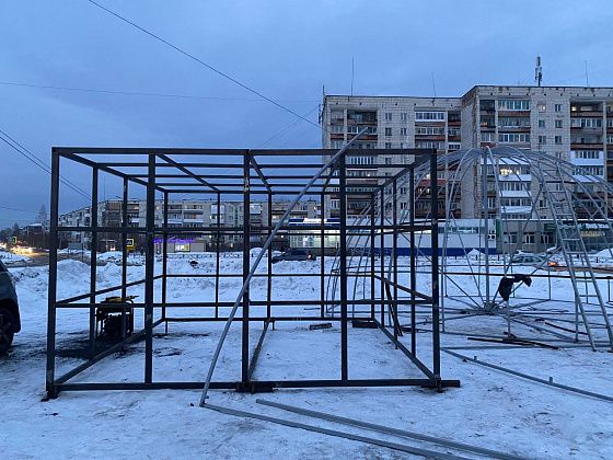 Днем пятницы на “кольце” велись монтажные работы по установке новогоднего украшения. На земле лежат металлические дуги, стоял сварочный аппарат. На вопросы о том, что тут будет установлено, мужчины отвечали неохотно.