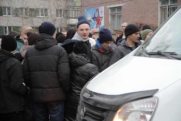 Отправка проходила от стен военного комиссариата. Чтобы проводить парней, собралось не меньше сотни человек – родные, близкие, друзья, любимые люди.