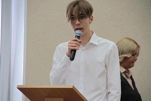Семен Баяндин. Молодой человек поблагодарил учителей, родителей, администрацию, главу Серова за вложенные в них силы, время и представленные возможности: “Эту победу по праву разделяют с нами учителя, родители и все собравшиеся в этом зале”.
