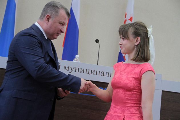 Огромное спасибо родителям – тем, кто всегда вас поддерживал, помогал, направлял. Без этих двух помощников вы бы таких результатов не достигли. Но, самое интересное впереди. Начинается интересная для вас жизнь, совсем новый этап. Я хочу всем пожелать, чтобы вы обязательно все-все поступили. И самое главное, обязательно-обязательно вернулись домой. Потому что нам нужна ваша помощь, нам нужны ваши знания для того, чтобы наш город хорошел и вместе с вами мы жили долго и счастливо.