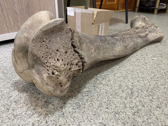 Найденную в июле бедренную кость мамонта рыбаки передали в Серовский исторический музей. Фото: Анна Куприянова, "Глобус"