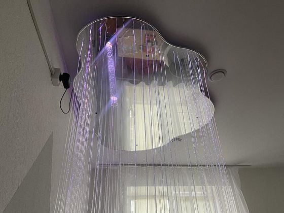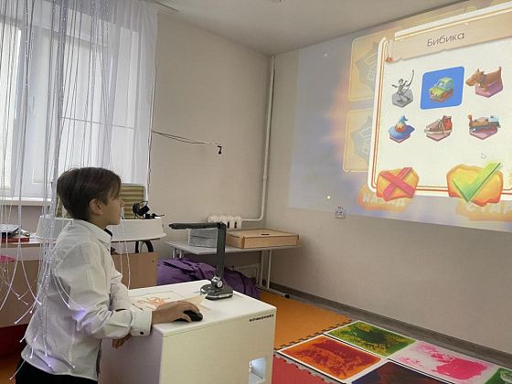 - Это был самый первый проект, который выиграл 4 года назад. Спустя четыре года пользования мы поняли, что детям, у которых аутизм, ЗПР, не хватает такой комнаты. Заказали жидкий пол. Нравится по нему ходить. Дети ручками рисуют водичкой, это завораживает, глазки отдыхают. Зеркальное облачко: нити - это оптоволокно, дети из него косички плетут. В темноте оно ярко горит, - уточнила Екатерина Олеговна. - Мультистанок для постановки мультфильмов из пластилина: у нас есть кружок прикладного творчества, где дети лепят активно и хотим связать программу с поделками.