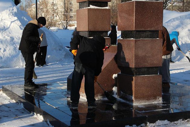 "Снежный десант" привел в порядок территорию двух мемориалов. Фото: Анна Куприянова, "Глобус"
