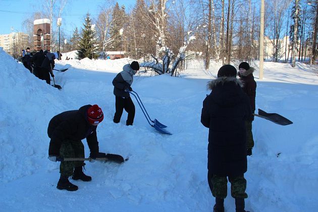 Не меньше сотни детей и подростков, представителей организаций и общественных объединений собрались у мемориала “Колокол” в полдень 6 февраля. Добровольцы пришли убрать снег накануне памятной даты - 37-й годовщины вывода советских войск из Афганистана.