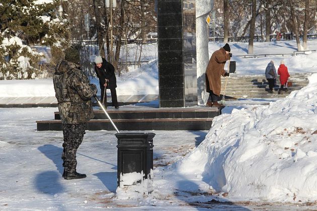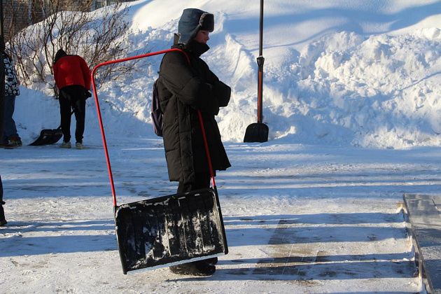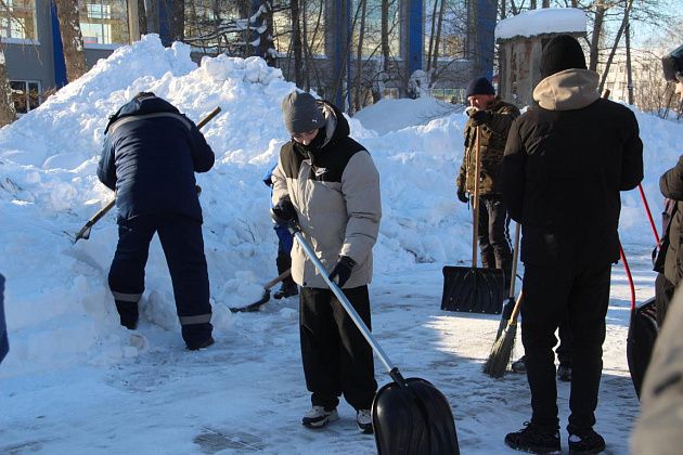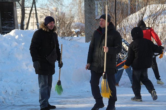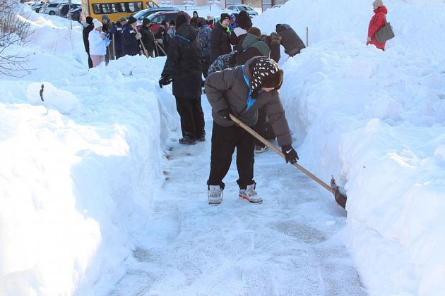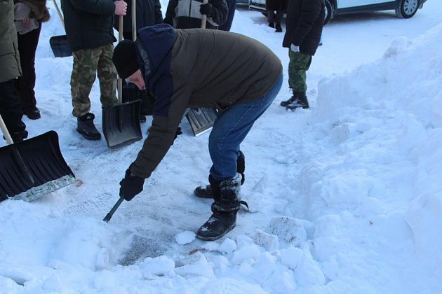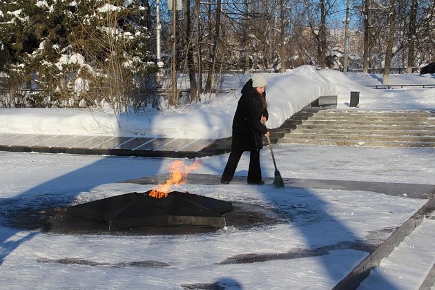 Участники "Снежного десанта" вооружились лопатами, метлами, скребками. Взрослые раскалывали слежавшийся снег, дети откидывали его в сторону. Совместными усилиями добровольцы прибрали территорию мемориала “Колокол” и ведущие к нему дорожки. Кто-то смел снег у “Вечного огня”. Часть волонтеров привела в порядок пешеходные дорожки в сквере.