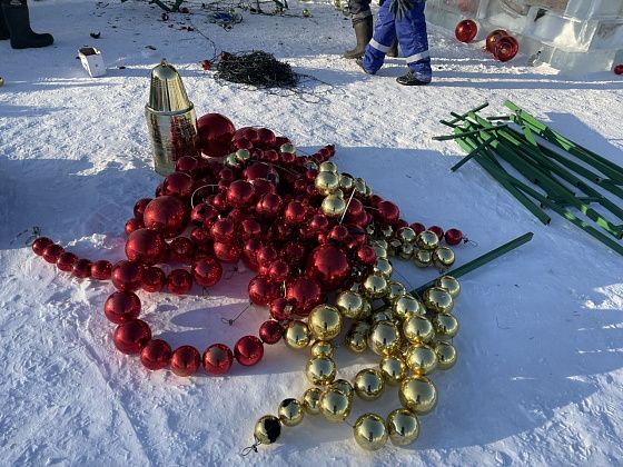Утром 22 января покореженная конструкция лежала на земле. В своих соцсетях администрация Серова рассказала, что городок продолжит работу до 9 февраля, конструкцию ели и часть иллюминации демонтируют.