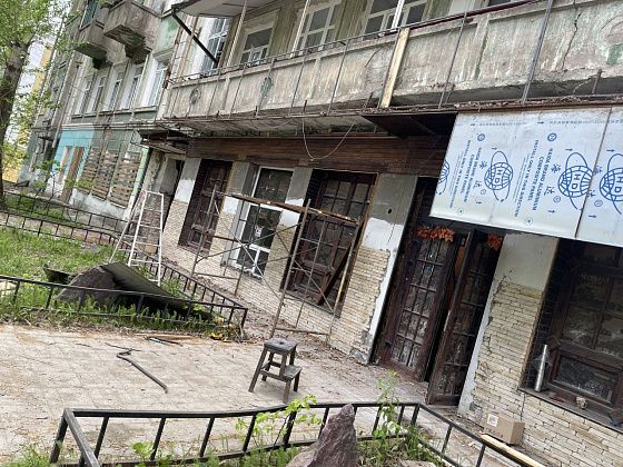 Напомним, люди неоднократно жаловались на подростков, которые били окна в доме №2. Дом признан аварийным, жителей в нем не осталось и место притягивает к себе молодежь. Горожане видели подростков, разгуливающих внутри дома. Щиты из досок на окнах и дверях здания молодежи не помеха, кто-то постоянно ломает доски и в дом можно свободно проникнуть. Со стороны двора целых окон практически не осталось. На первом этаже здания находится спа-салон. В четверг, 29 мая, двое рабочих разбирали фасад спа-салона. Большие детали наружных украшений замотанные в пленку лежали на земле.