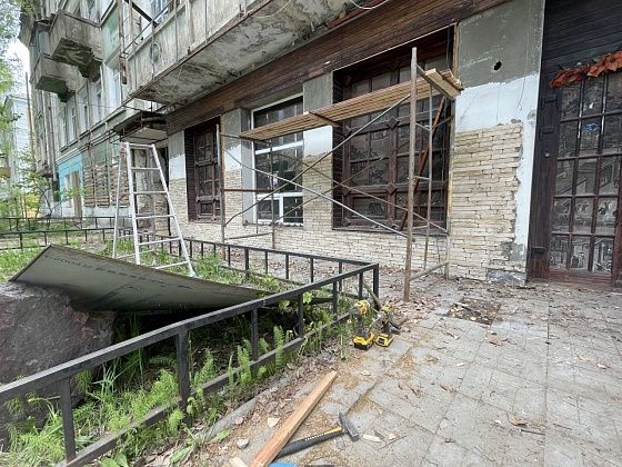 В четверг, 29 мая, у дома №2 по улице Февральской Революции, состояние которого вызывает обеспокоенность граждан, были замечены рабочие. Они демонтировали фасад спа-салона.