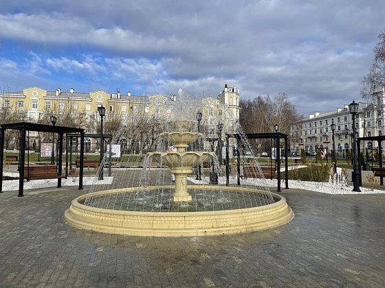 В сквере ДКМ проверили, как работает новый фонтан. Ежедневно любоваться фонтаном горожане смогут в следующем году. Фото: Анна Куприянова, "Глобус"