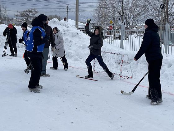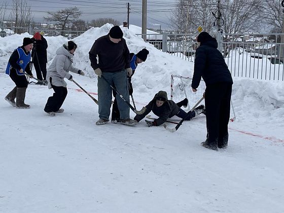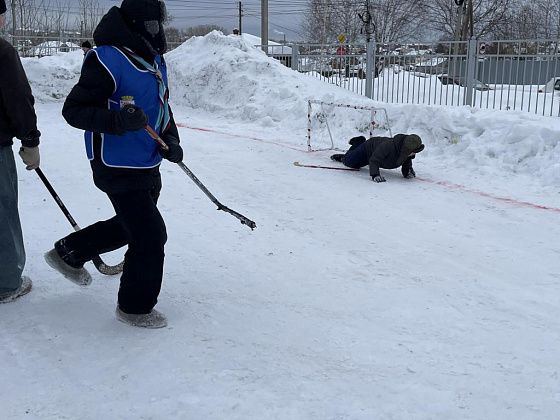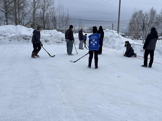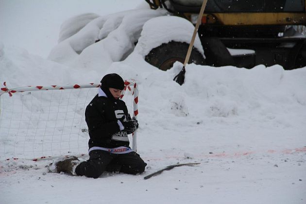 Игровое поле расчистили напротив входа в духовный центр. На снегу красной краской нарисовали прямоугольник, друг напротив друга установили ворота.