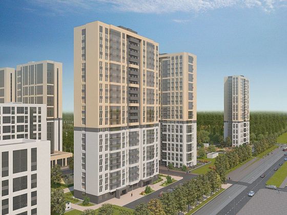 19 квартир-студий площадью от 22 кв.м до 25 кв.м в Екатеринбурге в современном квартале из нескольких новостроек с видом на Уктусские горы.
