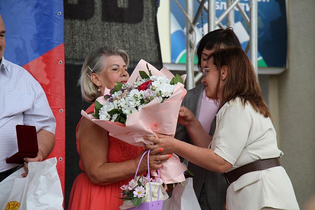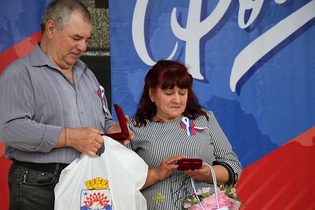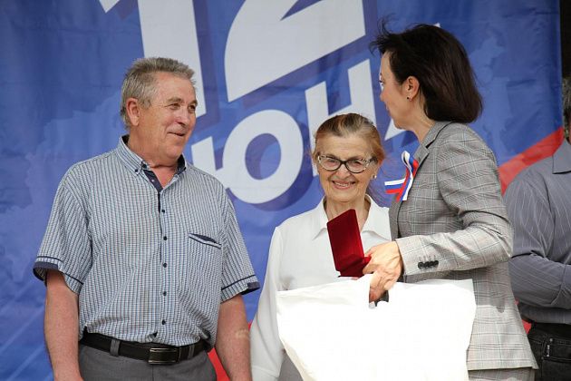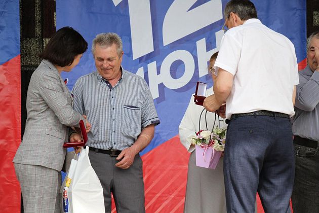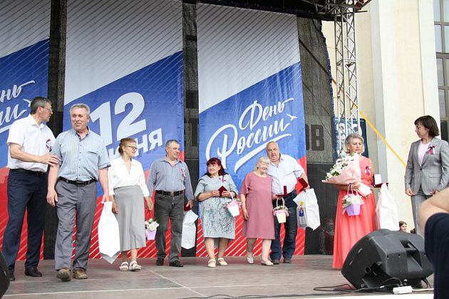На сцену пригласили 14-летних серовчан. Дмитрий Егоров, Ольга Чернецова и представитель полиции вручили молодым людям их первые паспорта. – Сегодня важный день в вашей жизни – вы получаете паспорт гражданина Российской Федерации, – обратилась к юным серовчанам Ольга Викторовна. – И помните о том, что в ваших руках будущее нашего города, будущее нашей страны. Мы уверены, что вы вырастите достойными гражданами и будете любить свою малую Родину. Поздравляю вас с этим знаковым событием, ну и желаю вам только успехов и побед. Поздравления и награды в этот день получили пары, прожившие в браке больше 50 лет и воспитавшие одного или нескольких детей. Супругам вручили региональные знаки отличия «Совет да любовь». Приглашая «золотые пары» (так их назвали ведущие) на сцену, гостям праздника рассказывали их краткую биографическую справку.