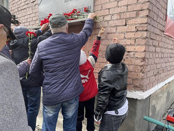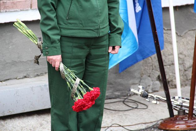 После минуты молчания люди возложили гвоздики к мемориальной доске, которая находится на стене военкомата.