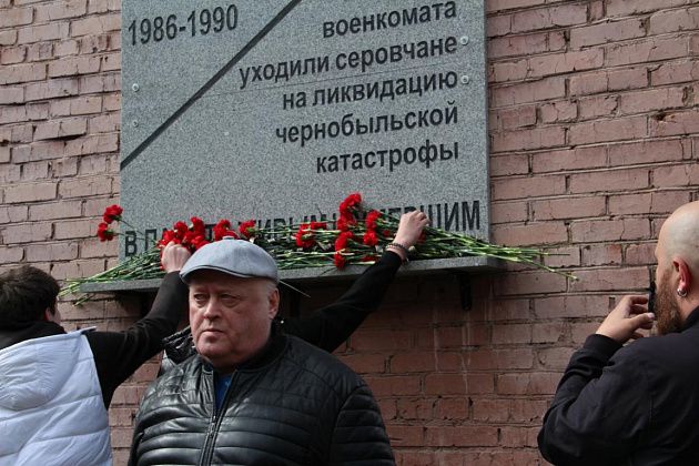 В полдень воскресенья, 26 апреля, у стен военкомата собралось несколько десятков серовчан разных возрастов. Люди пришли на митинг, посвященный Дню памяти погибших в радиационных авариях и катастрофах. В этот день 40 лет назад произошла катастрофа на Чернобыльской атомной электростанции.