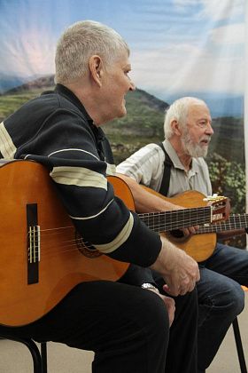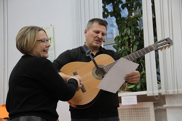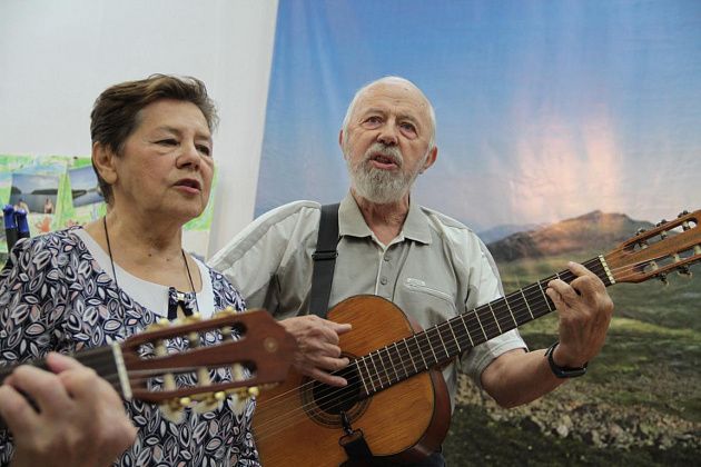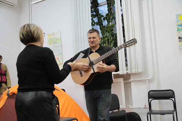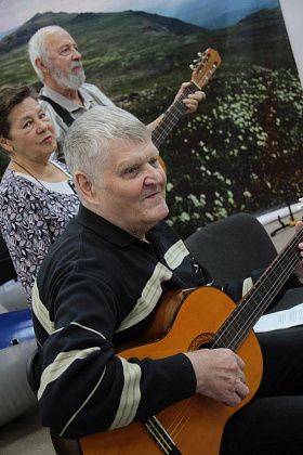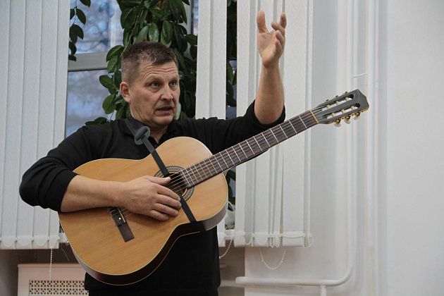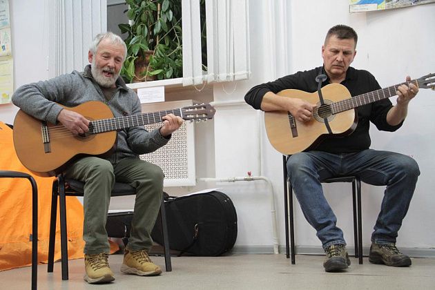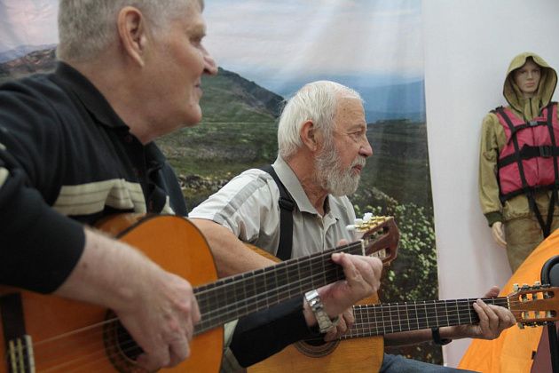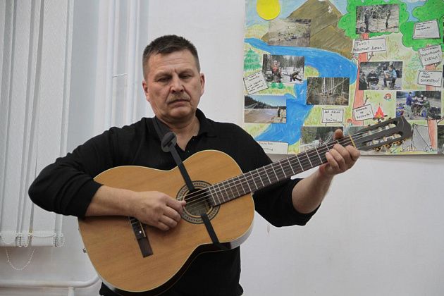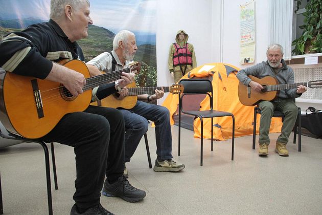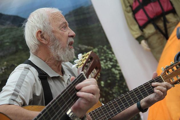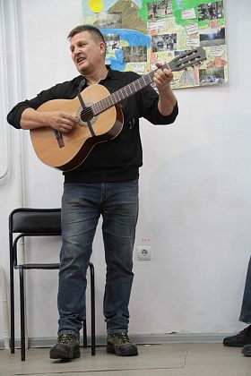 – Давайте попытаемся вспомнить, как мы ходили, ходим и продолжаем ходить – тут ребята, которые и сейчас славу «Конжака» поддерживают. Немножечко постараемся воссоздать эту атмосферу костра, похода, когда все собираются вокруг гитаристов, вспоминают байки. Поэтому предлагаю не только слушать, но и петь самим. Подпевайте, потому что песни, которые мы будем петь, наверно, будут знакомы всем, - попросил зрителей Андрей Анатольевич.