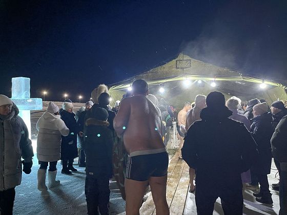 Едва священник отошел от купели, в нее начали окунаться желающие. Людей на начало купания было немного, суеты не было. Сотрудники МЧС помогали детям и женщинам зайти в воду, на выходе из купели смельчаков ждали встречающие с полотенцами в руках.