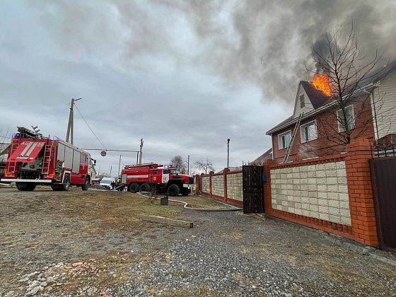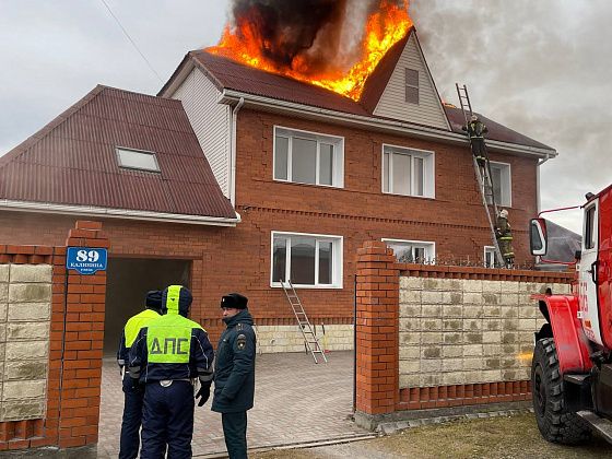 После полудня субботы, 22 ноября, загорелся частный дом №89 по улице Калинина. К горящему дому подъехали спецслужбы города. Пламя разошлось по крыше, густой черный дым виднелся издалека. Зеваки снимали происшествие на телефон. В горящем доме поочередно работали огнеборцы из газодымозащитного звена.