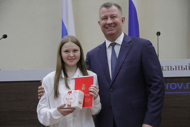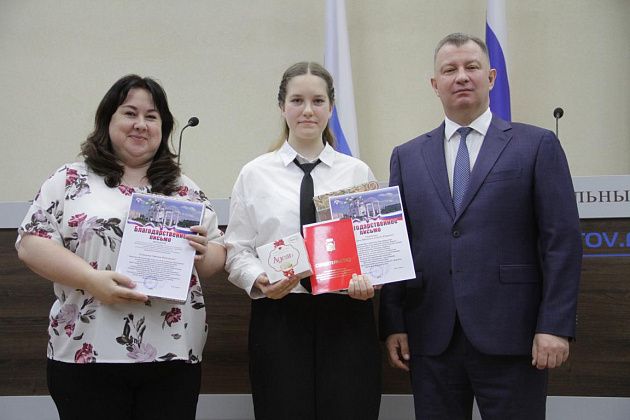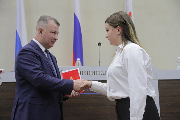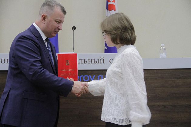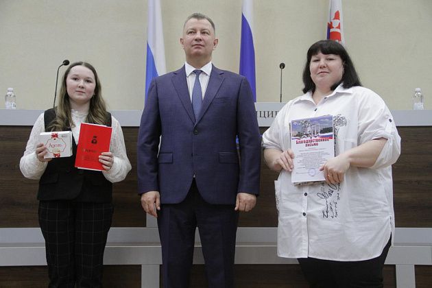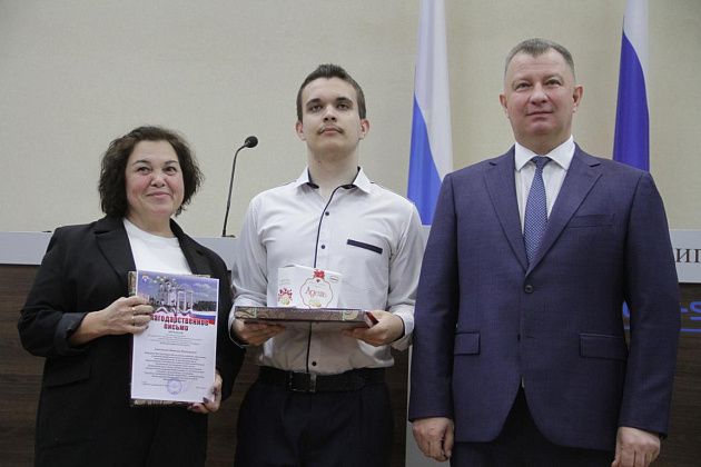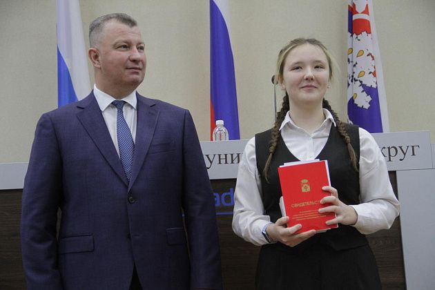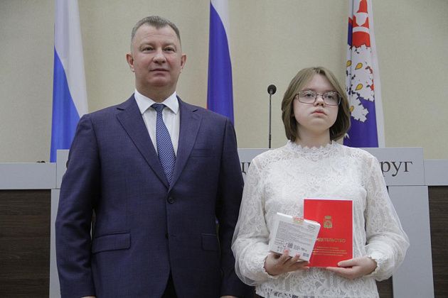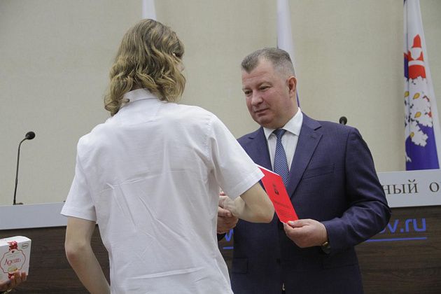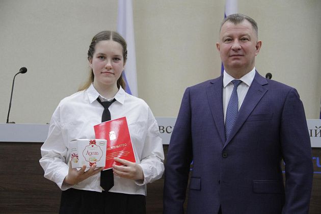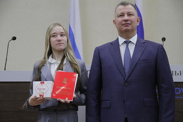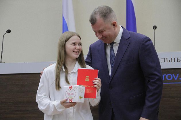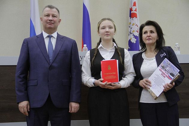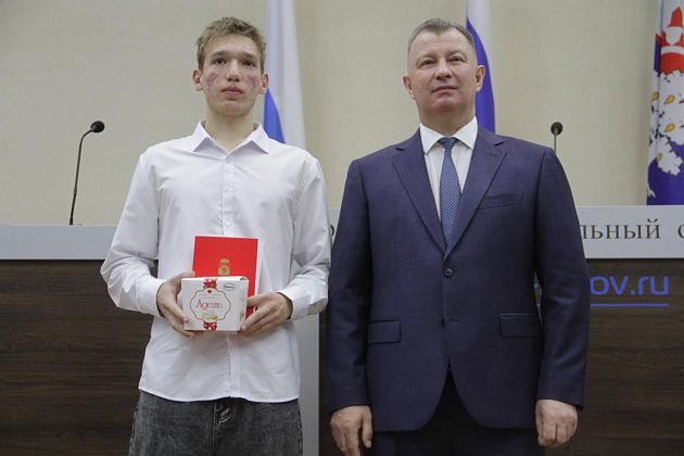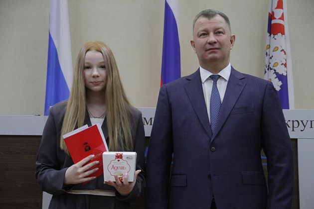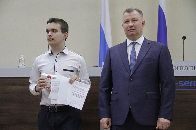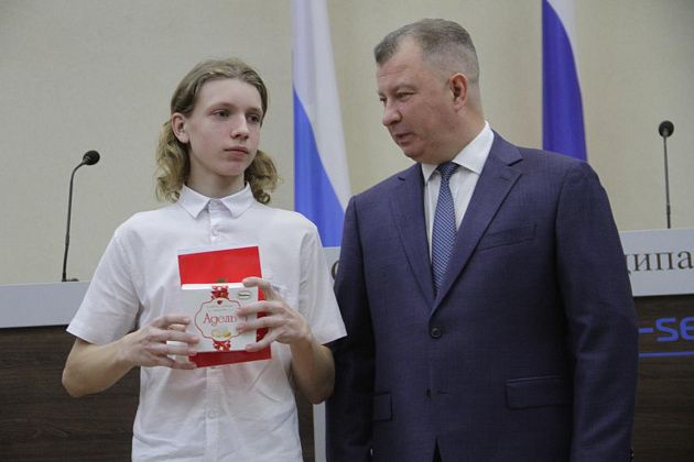 – Большие слова благодарности хотелось бы выразить, в первую очередь, вам, Василий Витальевич, также нашему Управлению образования и городской администрации за то, что вы не только оцениваете и видите наши результаты, которые мы показываем, но и в такой форме предоставляете нам поощрение. Также хотелось бы выразить слова благодарности нашим учебным заведениям, которые готовят нас к различного вида конкурсам, мероприятиям, олимпиадам, на которых мы показываем очень большие результаты и прославляем нашу область, наш город и наши родные школы. Особые слова благодарности хотелось бы выразить педагогам-наставникам и нашим родителям, которые воспитывают в нас те качества, которые присущи настоящей личности, а также помогают развивать в нас талант, стремление и рвение к достижению больших, высоких результатов. Спасибо большое!
