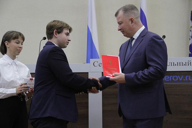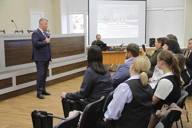 Торжественная церемония вручения стипендий главы Серовского муниципального округа школьникам за успехи в различных областях прошла в актовом зале мэрии в среду, 12 ноября. Награды из рук мэра Василия Сизикова получили около двух десятков ребят.