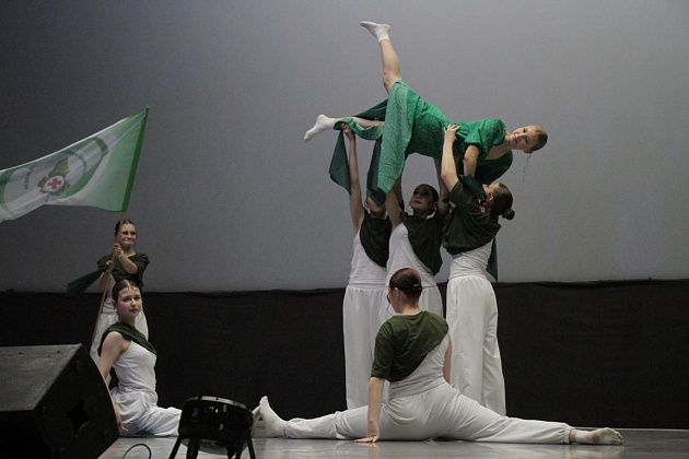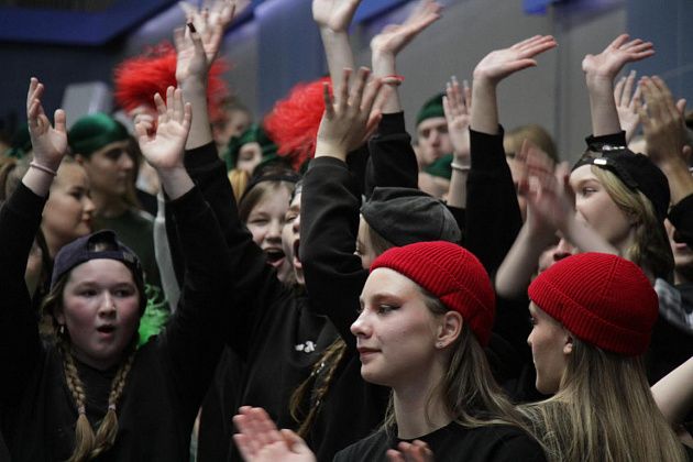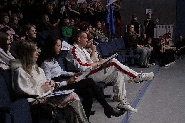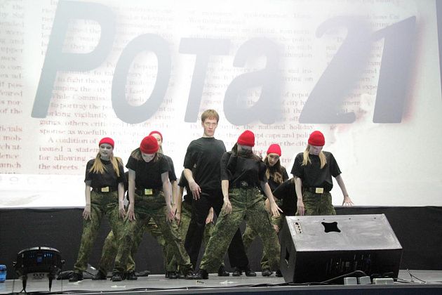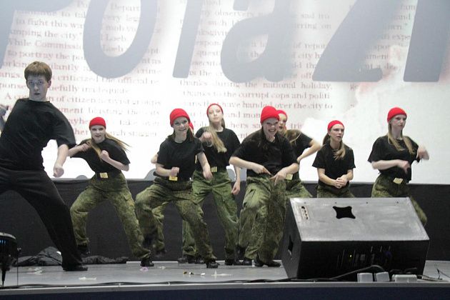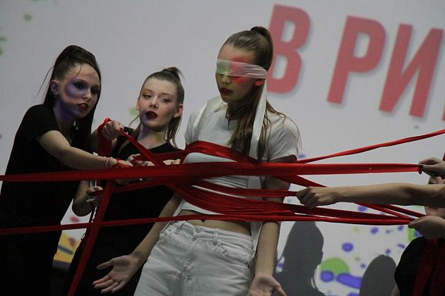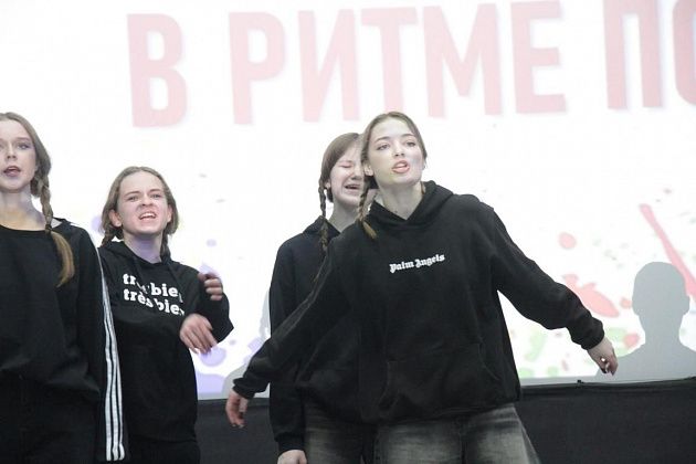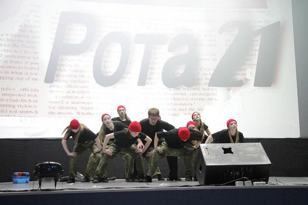 чем в прошлом году – 13: “Наследники ритма” (школа №9), “Вне рифмы” (школа №14), “ПингвиТехно” (школа №27), “Капучино” (школа №13), “Дети ритма” (школа №20), “Рота 21” (школа №21), “РитмоГрация” (школа поселка Красноярка), “Полиформула” (школа №1), “Черные пантеры” (школа №22), “Герои нашего времени” (сборная школ), “Rhythmic crowd” (танцевальная студия “ЯНа Танцы”), “Учебный движ” (Северный педагогический колледж), “Адреналин” (медицинский колледж). Каждую из команд представил ведущий