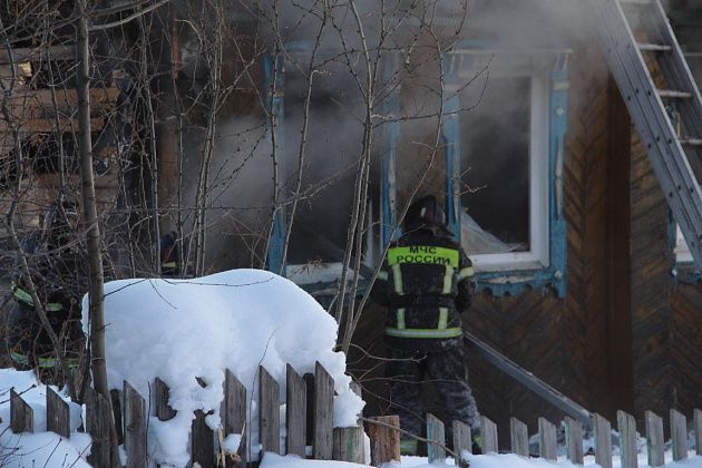 Пожар в доме по улице Клары Цеткин произошел 5 марта. Из горящего здания вынесли тело погибшего мужчины. Фото: Анна Куприянова, "Глобус"